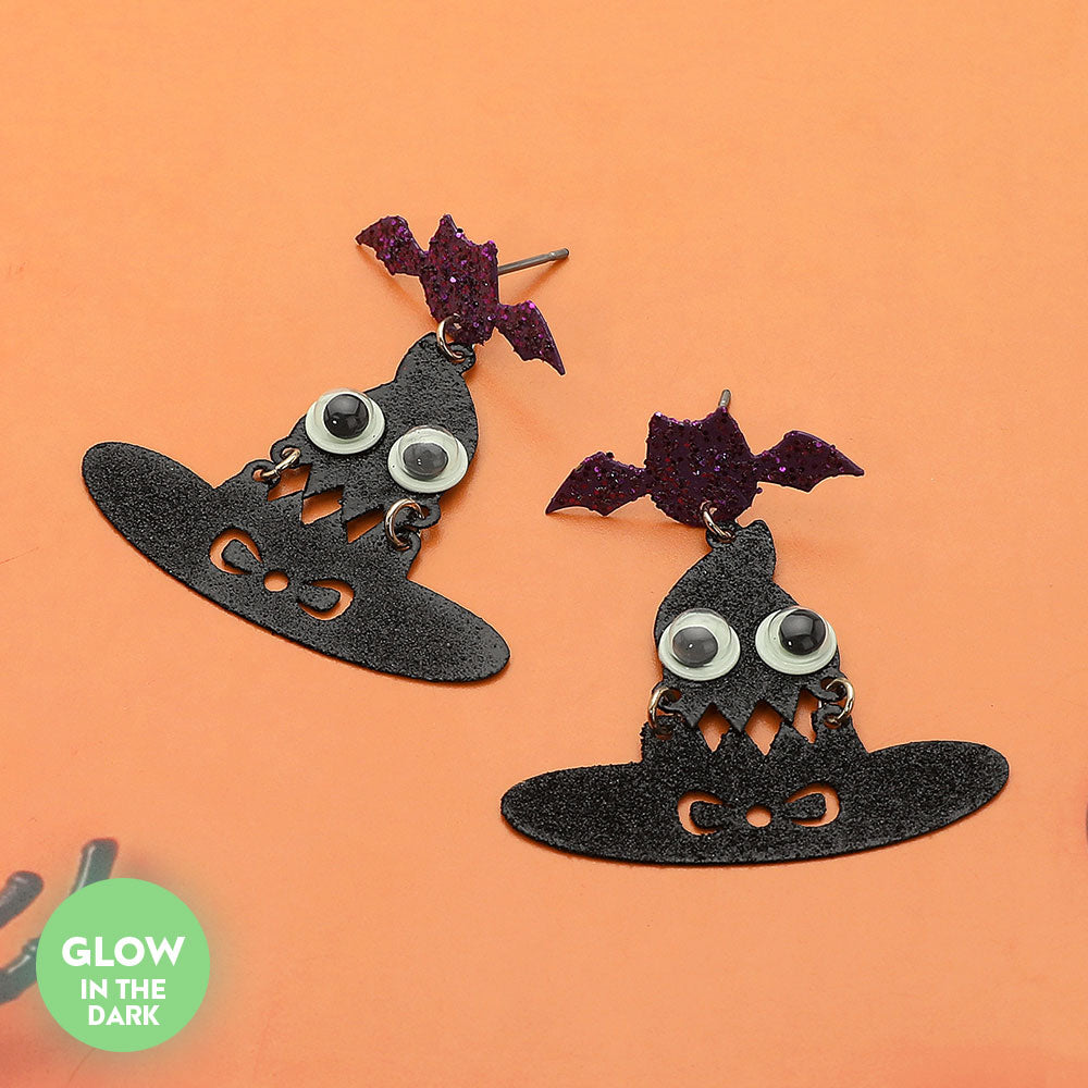 iLLASPARKZ GLOW IN THE DARK Halloween Bat Witch Hat Dangle Earrings