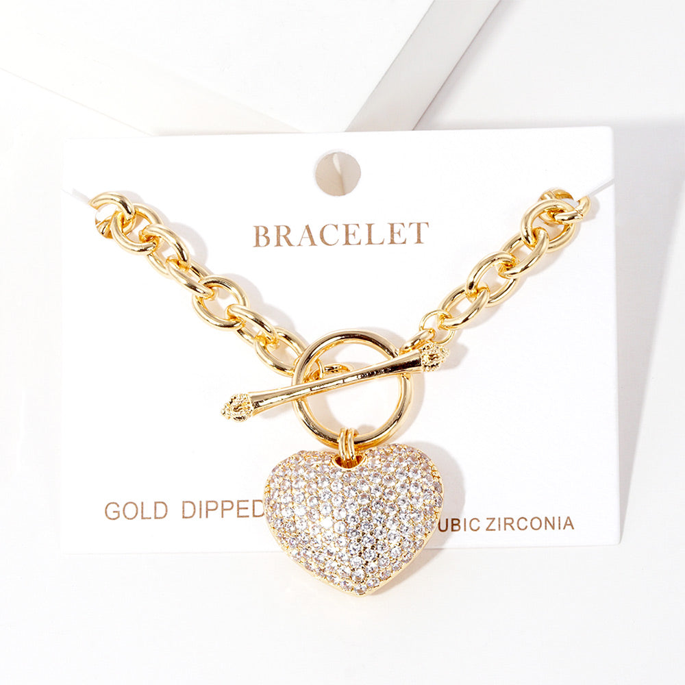 iLLASPARKZ Gold Dipped CZ Pave Heart Charm Toggle Bracelet