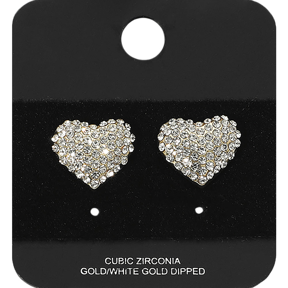 iLLASPARKZ Gold Dipped CZ Stone Paved Heart Stud Earrings