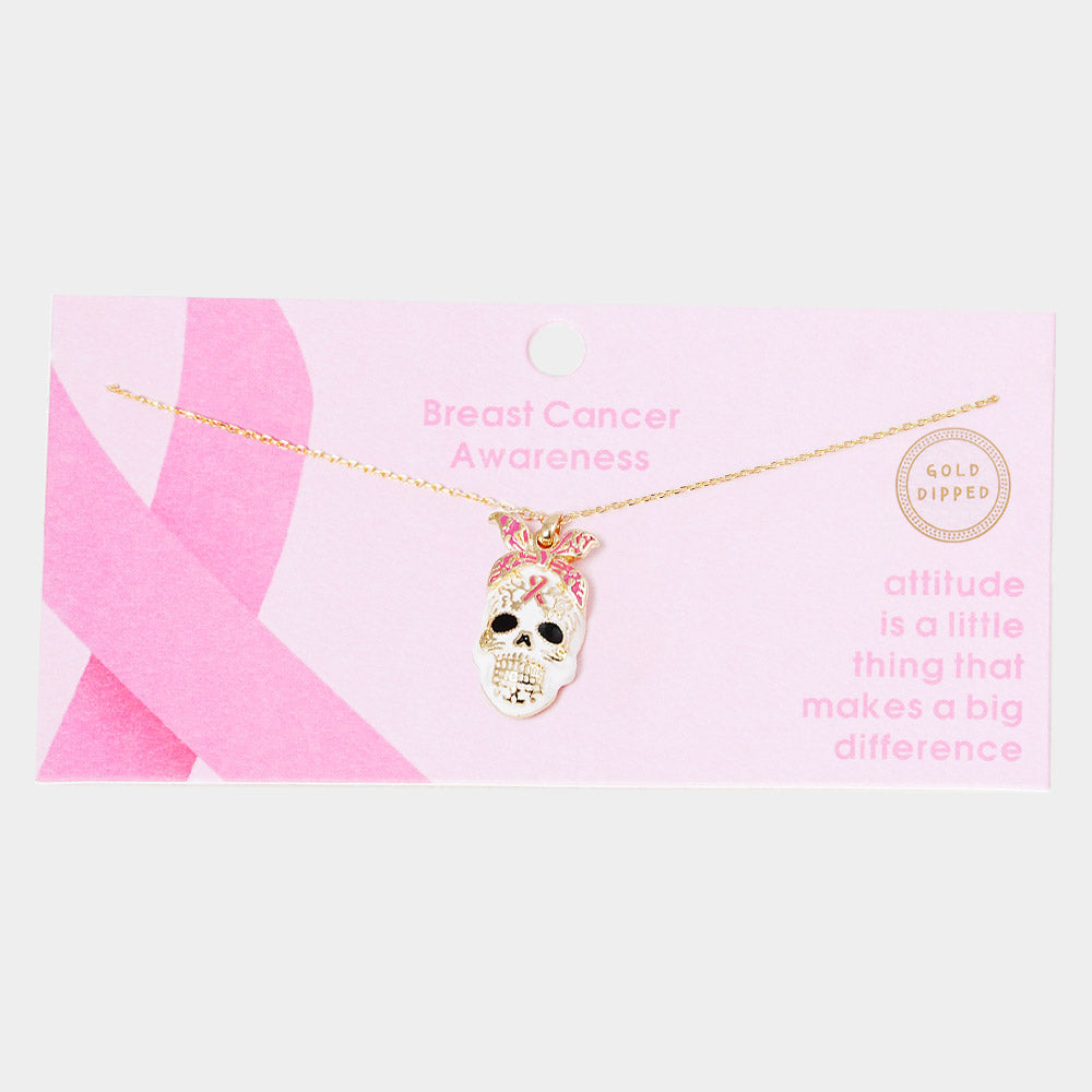 iLLASPARKZ Gold Dipped Enamel Pink Ribbon Skull Pendant Necklace