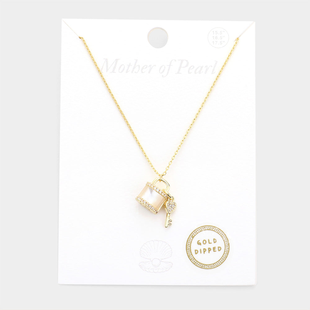 iLLASPARKZ Gold Dipped Mother of Pearl Lock Key Pendant Necklace