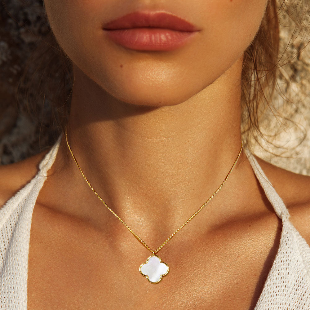 iLLASPARKZ Gold Dipped Mother of Pearl Quatrefoil Pendant Necklace