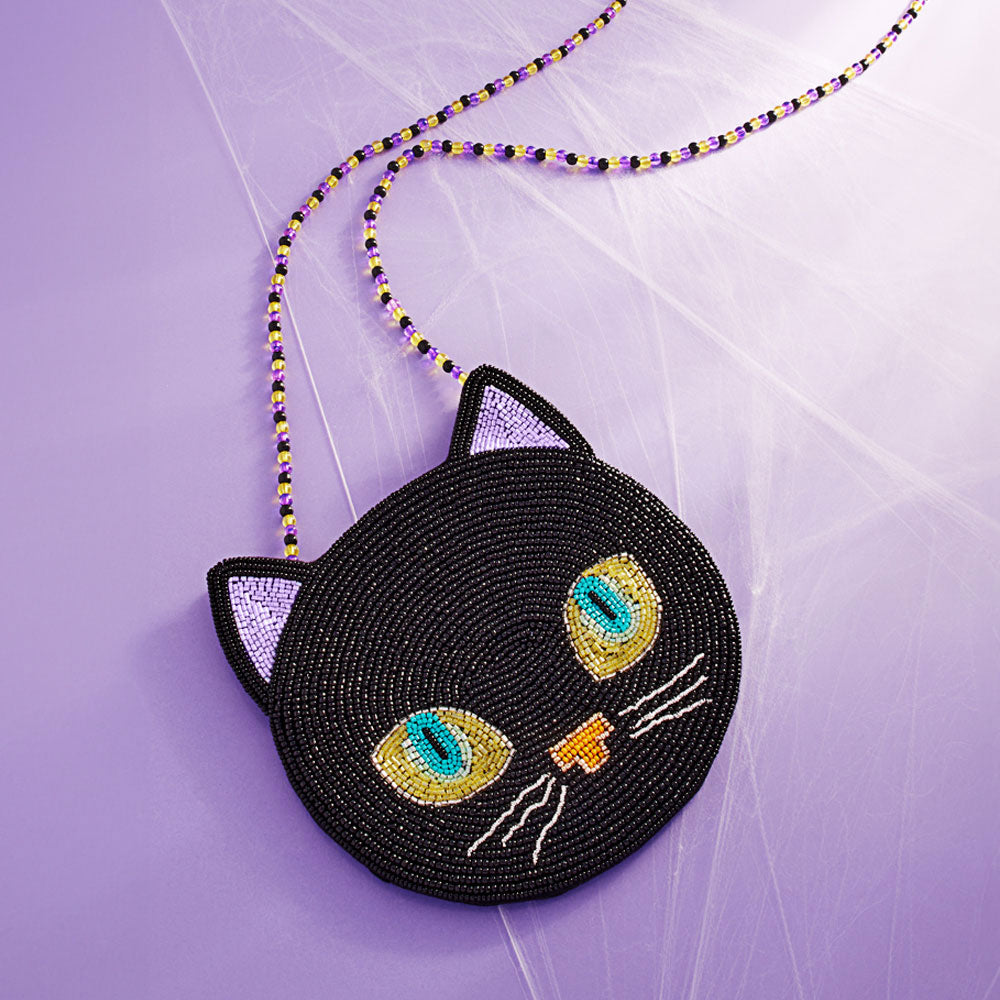 iLLASPARKZ Halloween Black Cat Beaded Mini Crossbody Bag