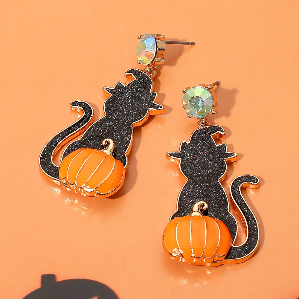 iLLASPARKZ Halloween Pumpkin Black Cat Dangle Earrings