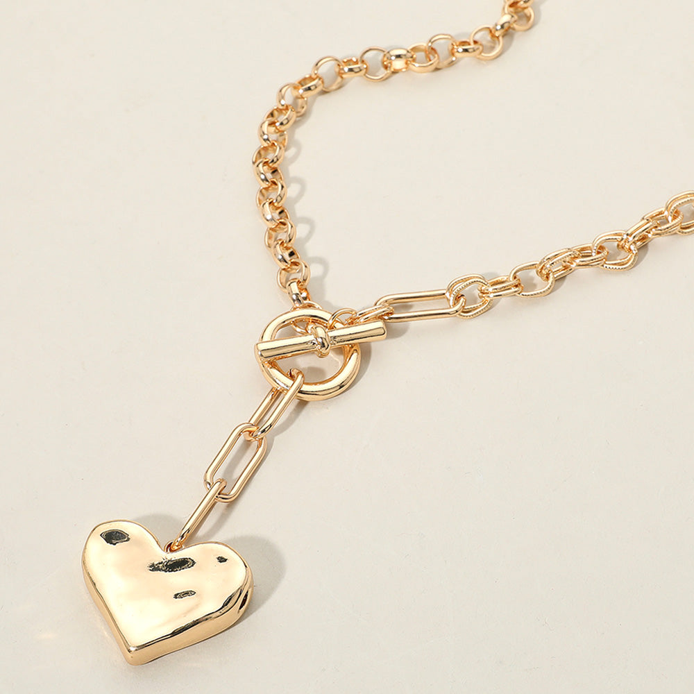 iLLASPARKZ Hammered Metal Heart Chunky Paperclip Chain Toggle Necklace