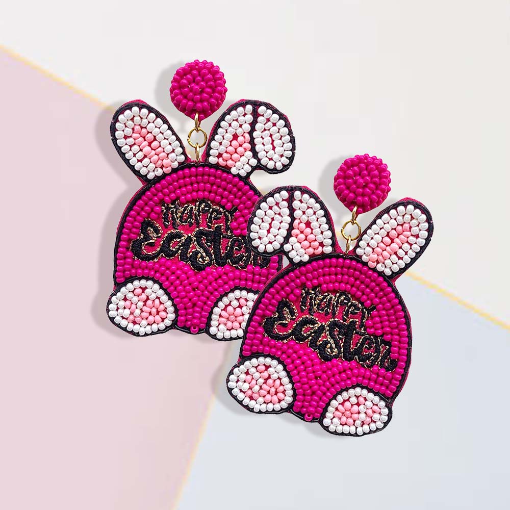 iLLASPARKZ Happy Easter Felt Back Seed Beaded Bunny Dangle Earrings