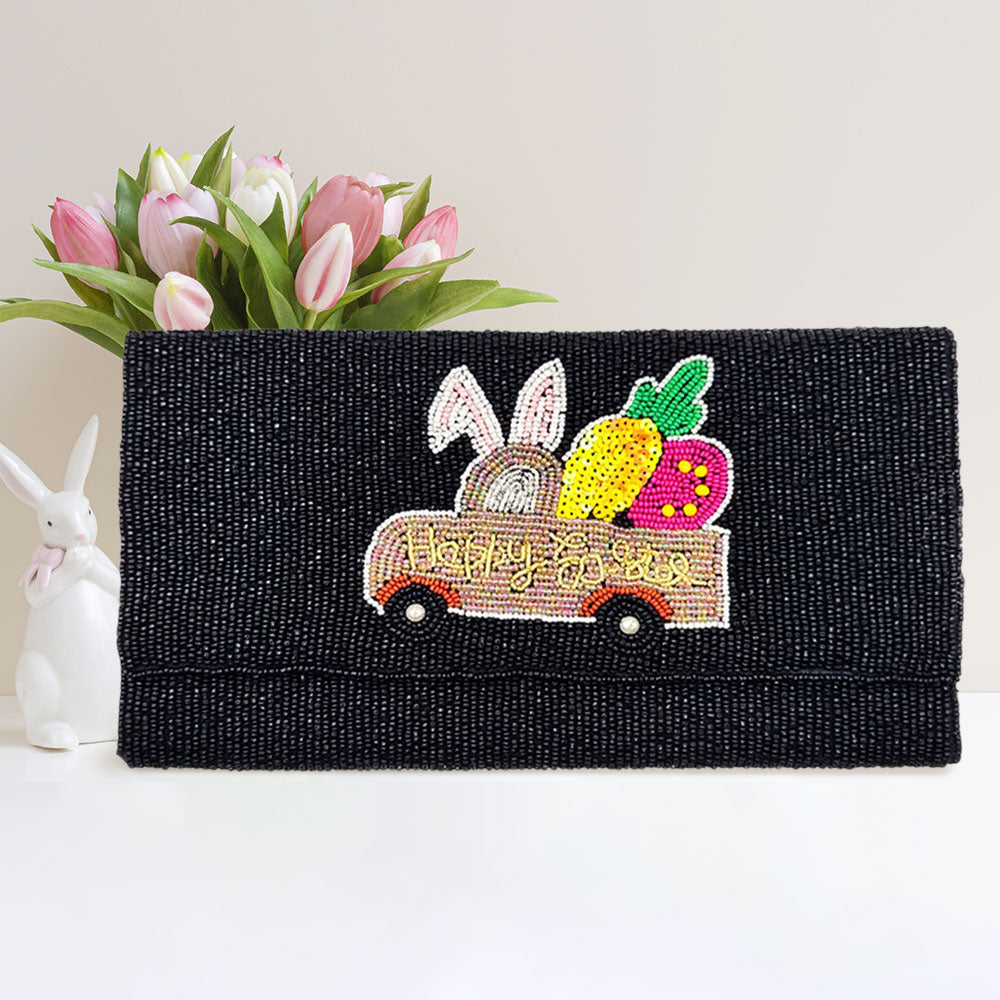 iLLASPARKZ Happy Easter Message Carrot Bunny Car Seed Beaded Clutch / Crossbody Bag