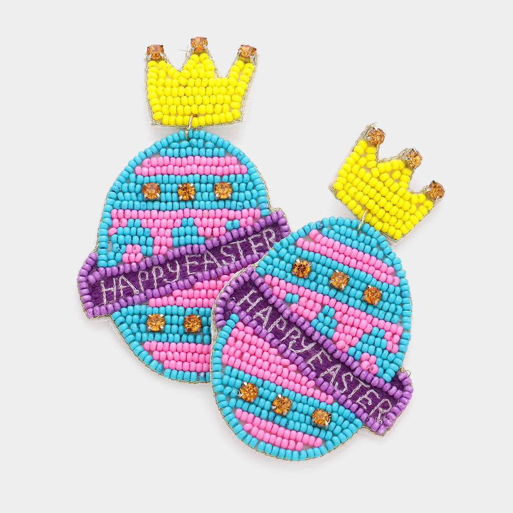 iLLASPARKZ Happy Easter Message Felt Back Seed Beaded Crown Egg Link Dangle Earrings