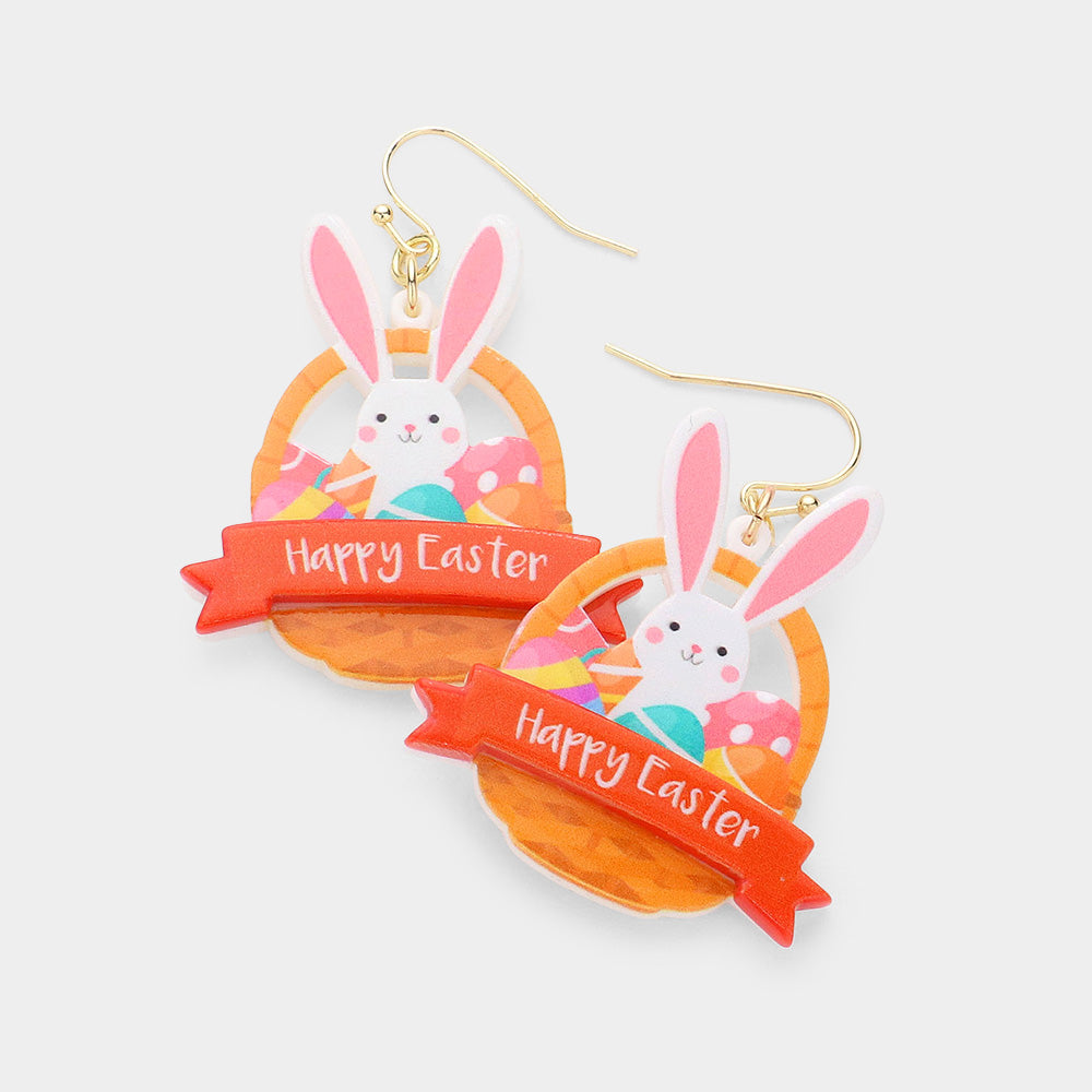 iLLASPARKZ Happy Easter Message Resin Bunny Egg Basket Dangle Earrings