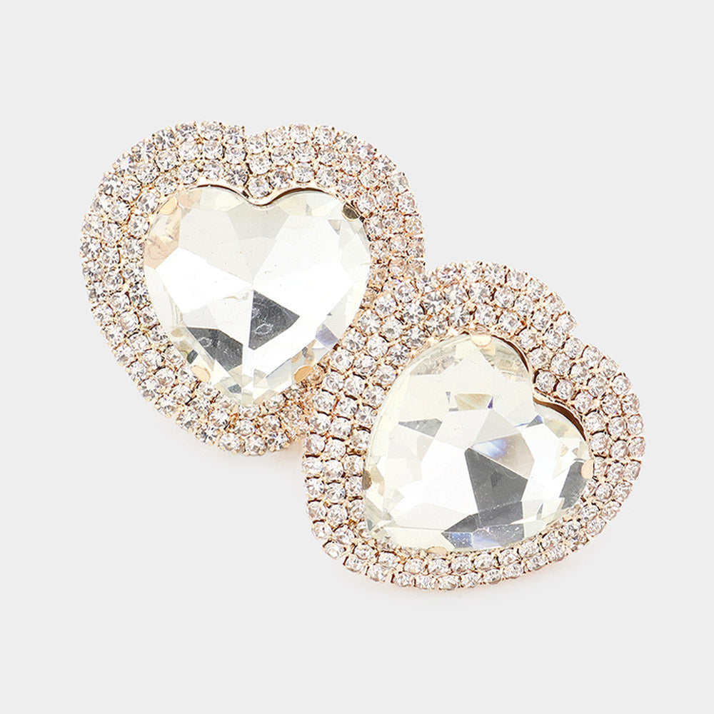 iLLASPARKZ Heart Glass Stone Cluster Clip On Earrings