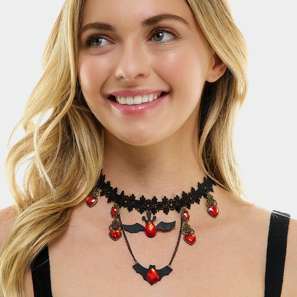 Make a bold statement with this gothic lace choker featuring bat charms and shimmering red beads. Ideal for Halloween, cosplay, or dark-themed outfits, this layered necklace adds edgy elegance to any look.
