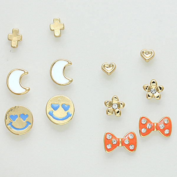 • Lacquered Enamel Moon Stud Earrings Set of 6