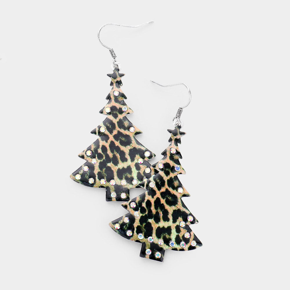 iLLASPARKZ Leopard Rhinestone Christmas Tree Earrings
