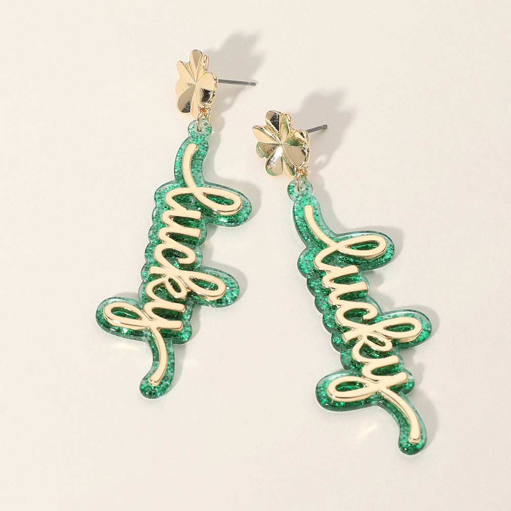 iLLASPARKZ LUCKY Message Resin Plate Clover Dangle Earrings