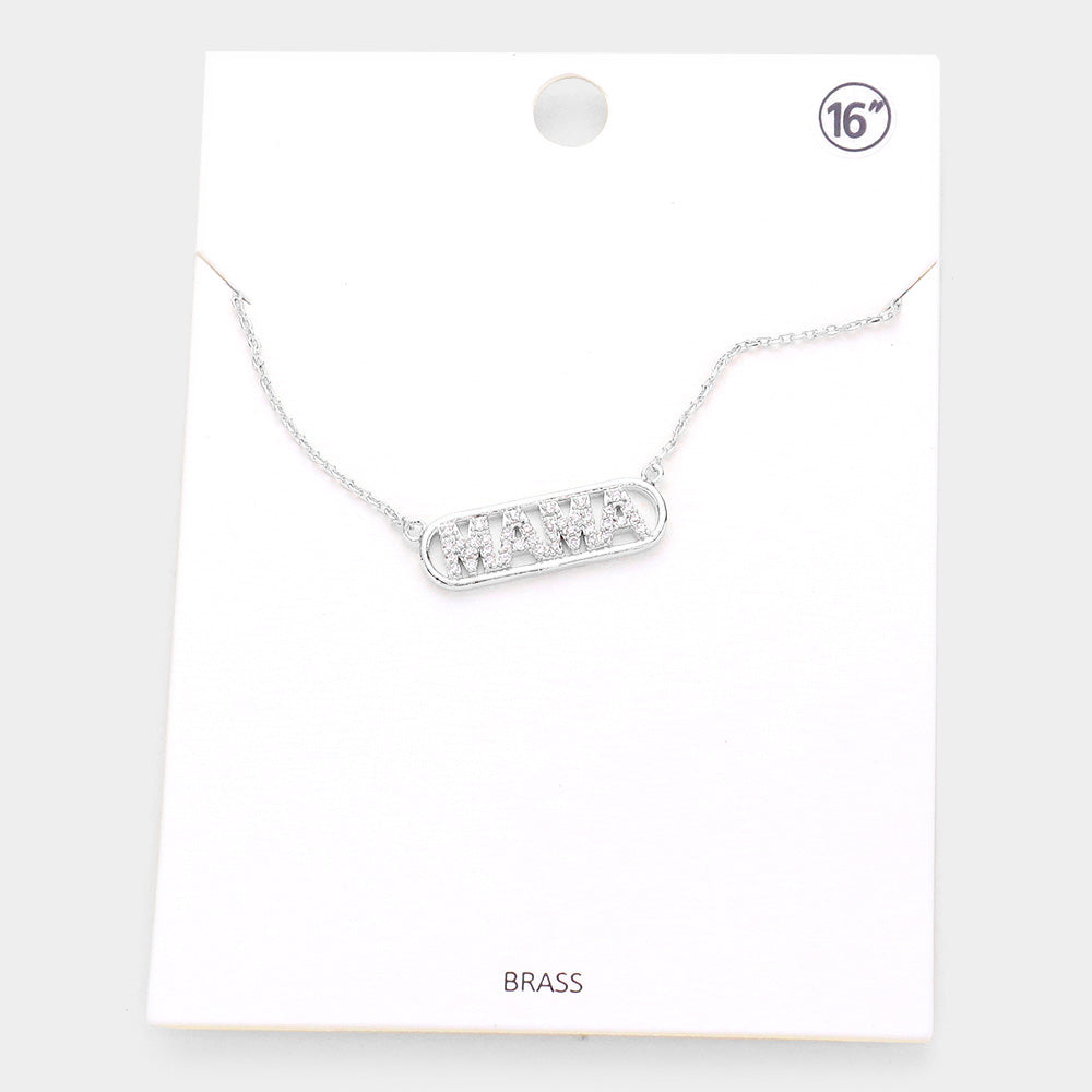 iLLASPARKZ MAMA Brass Metal Rhinestone Embellished Message Pendant Necklace
