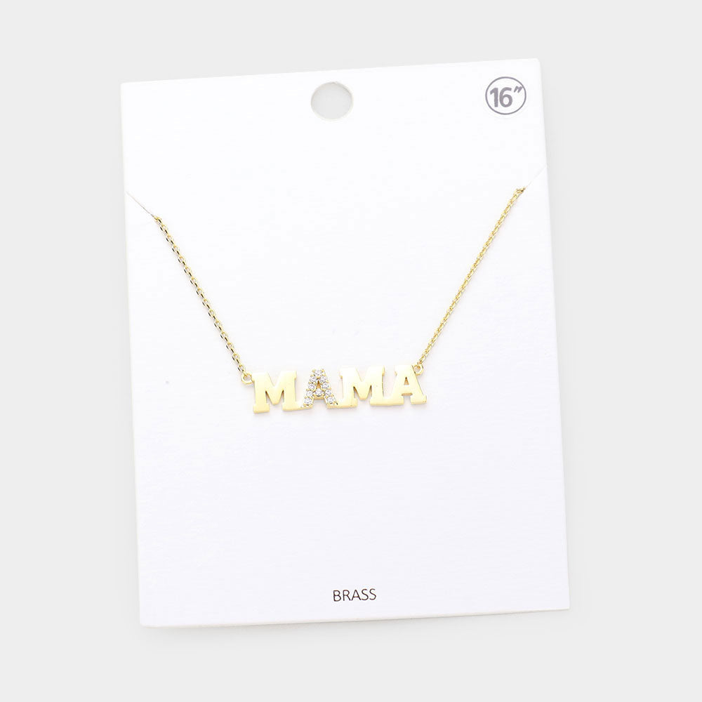 iLLASPARKZ MAMA Rhinestone Embellished Brass Metal Message Pendant Necklace