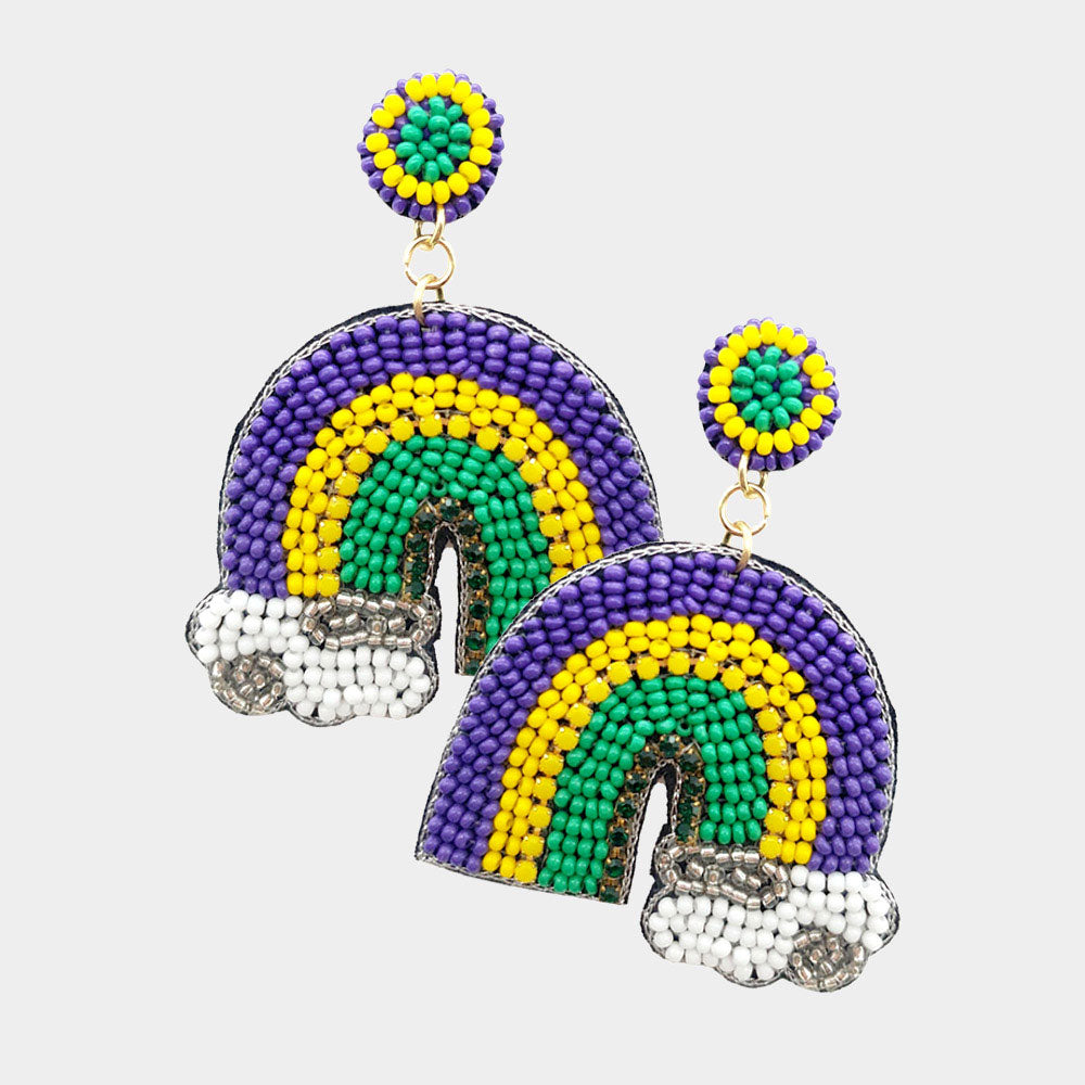 iLLASPARKZ Mardi Gras Felt Back Seed Beaded Rainbow Dangle Earrings