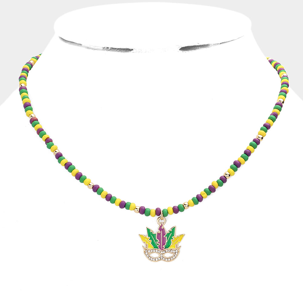 iLLASPARKZ Mardi Gras Mask Pendant Wood Ball Necklace