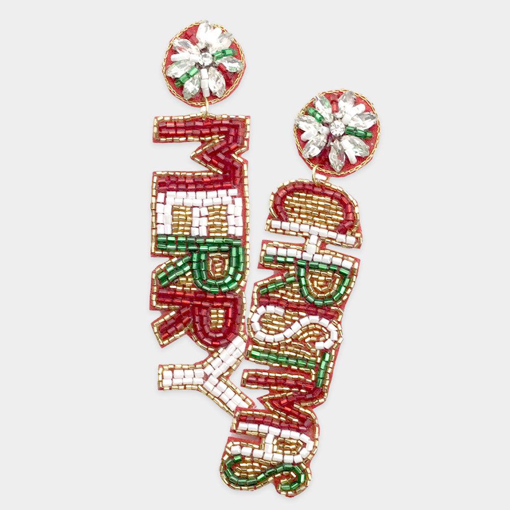 iLLASPARKZ MERRY CHRISTMAS Felt Back Beaded Message Dangle Earrings