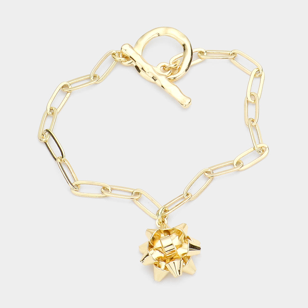 iLLASPARKZ Metal Christmas Bow Charm Toggle Bracelet