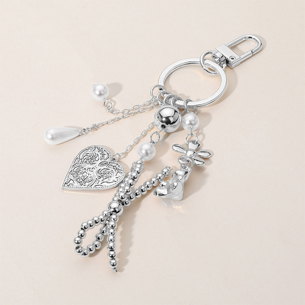 iLLASPARKZ Metal Heart Flower Teddy Bear Bubble Bow Pearl Embellished Bag Charm / Keychain