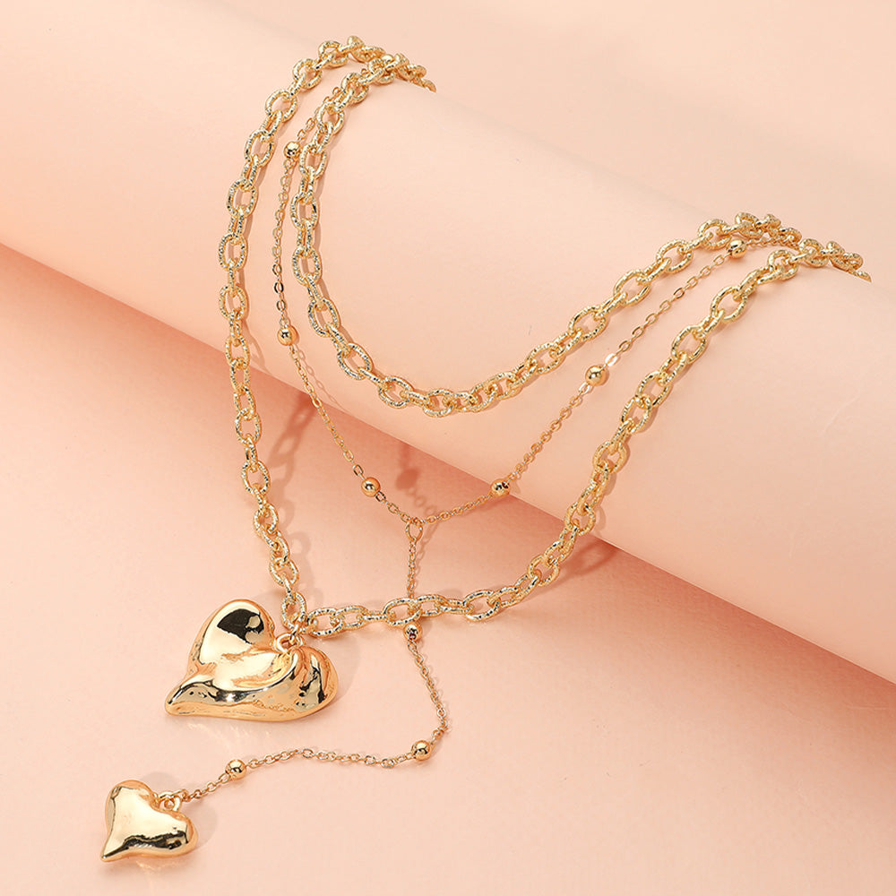 iLLASPARKZ Metal Heart Pendant Layered Textured Chain Necklace