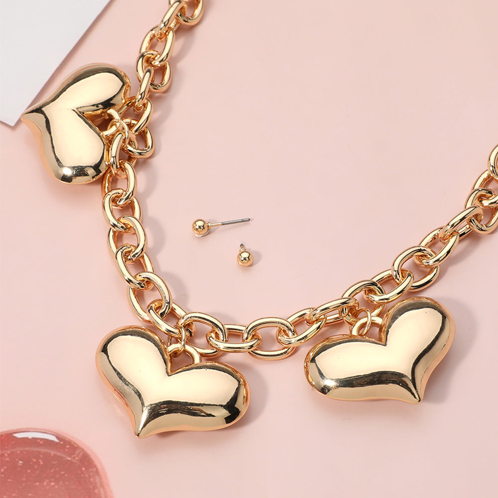 iLLASPARKZ Metal Puffy Heart Charm Station Chain Necklace