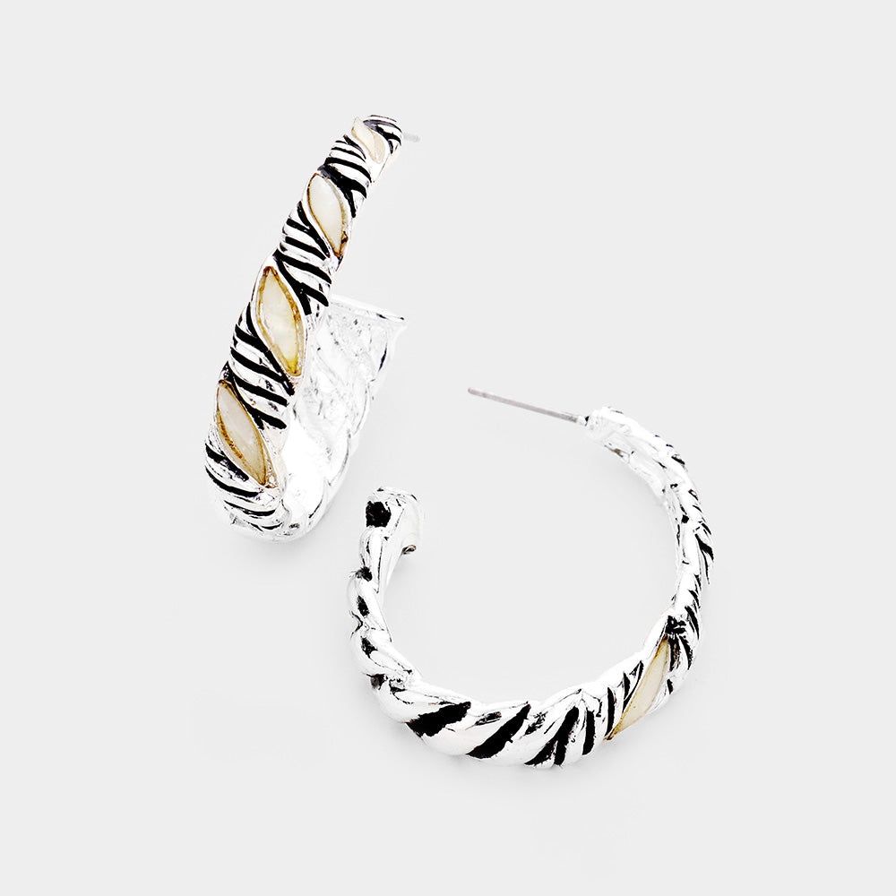 iLLASPARKZ Mother of Pearl Detailed Open Hoop Earrings