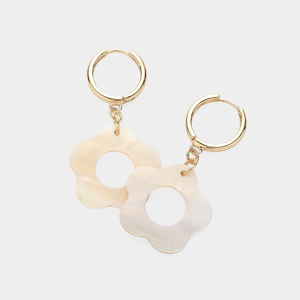 iLLASPARKZ Mother Of Pearl Flower Dangle Huggie Earrings