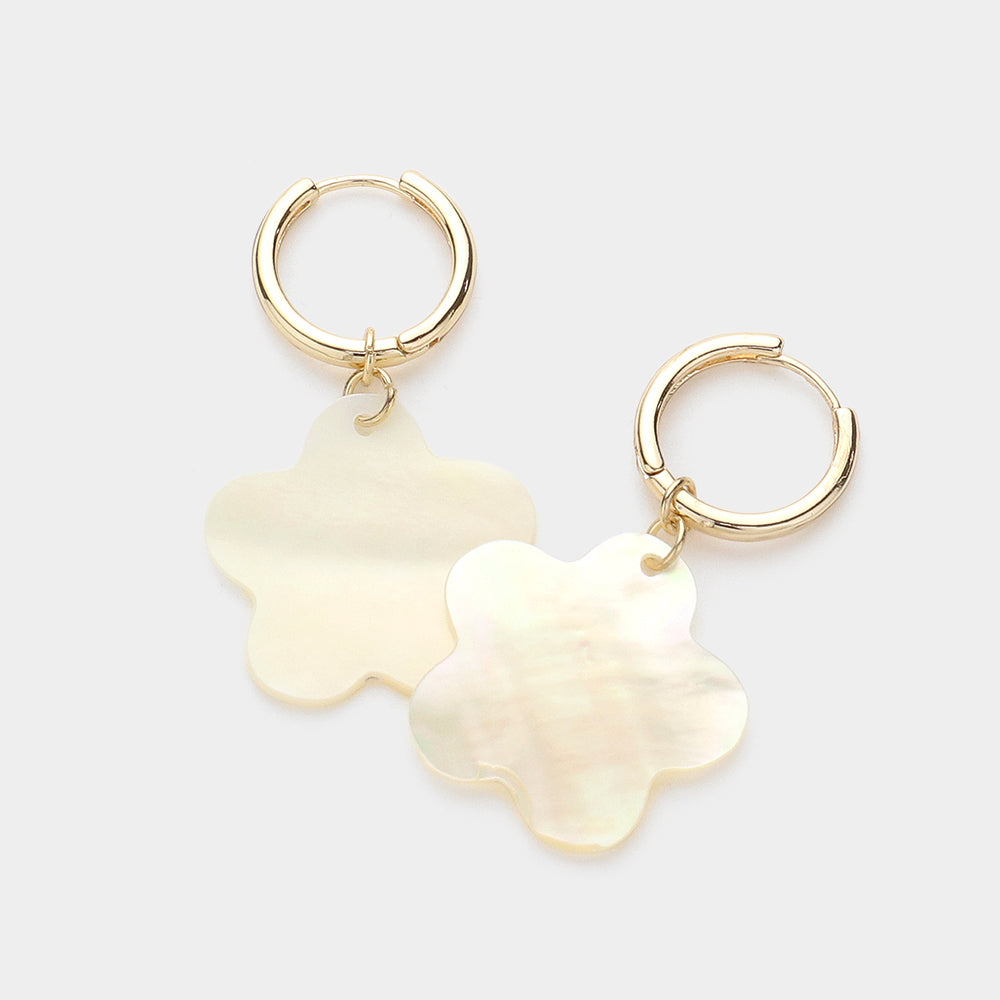 iLLASPARKZ Mother Of Pearl Flower Pointed Dangle Huggie Earrings