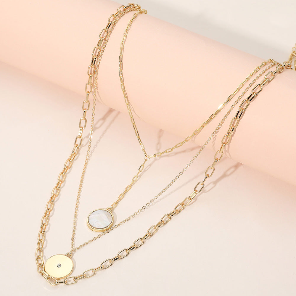 iLLASPARKZ Mother of Pearl Medal Y Shaped Triple Layered Necklace