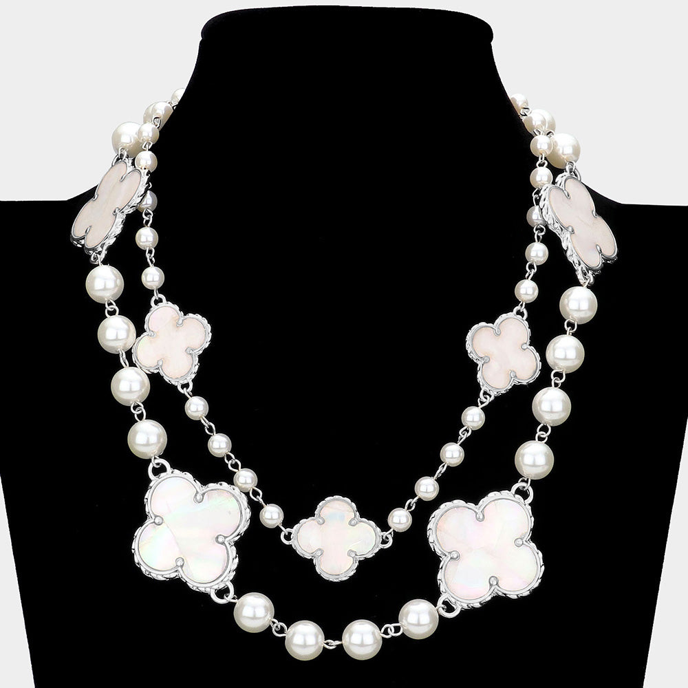 iLLASPARKZ Mother of Pearl Quatrefoil Accented Double Layered Necklace