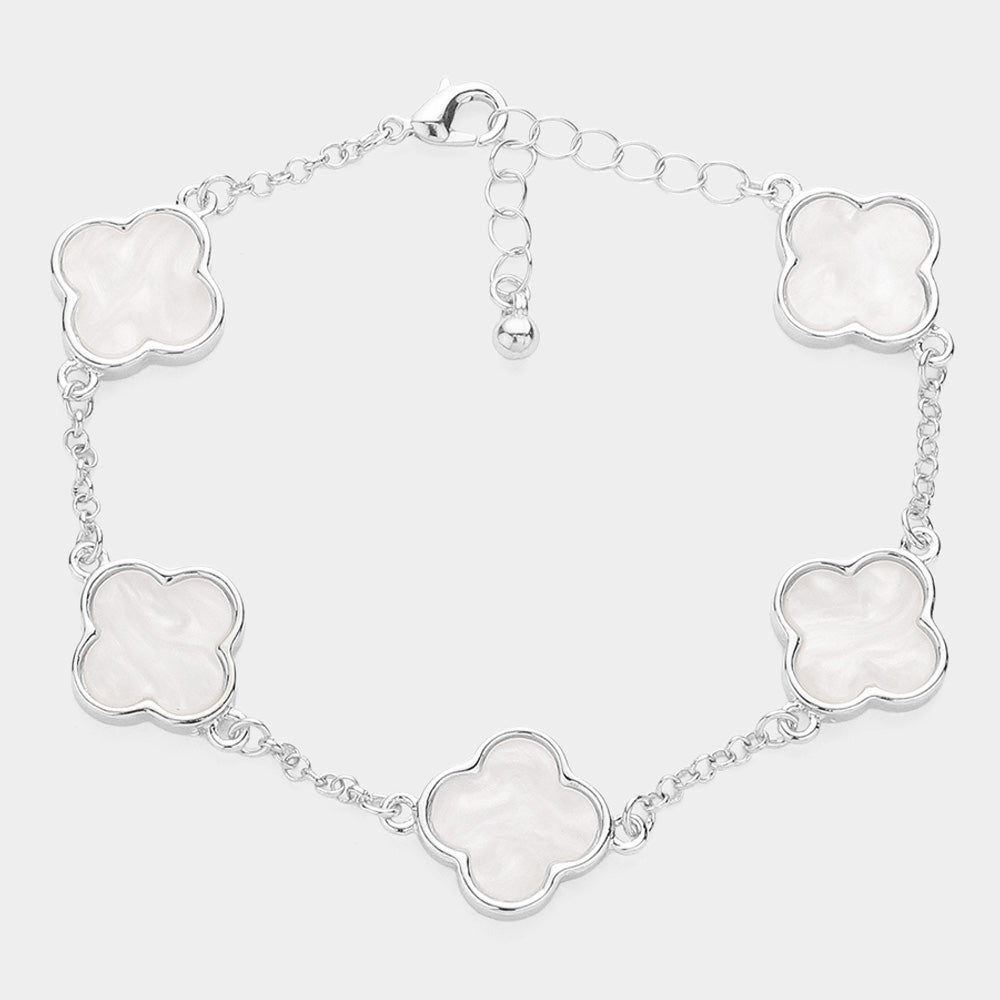 iLLASPARKZ Mother Of Pearl Quatrefoil Bezel Station Bracelet