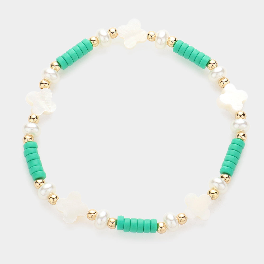 iLLASPARKZ Mother Of Pearl Quatrefoil Pointed Heishi Beaded Stretch Bracelet