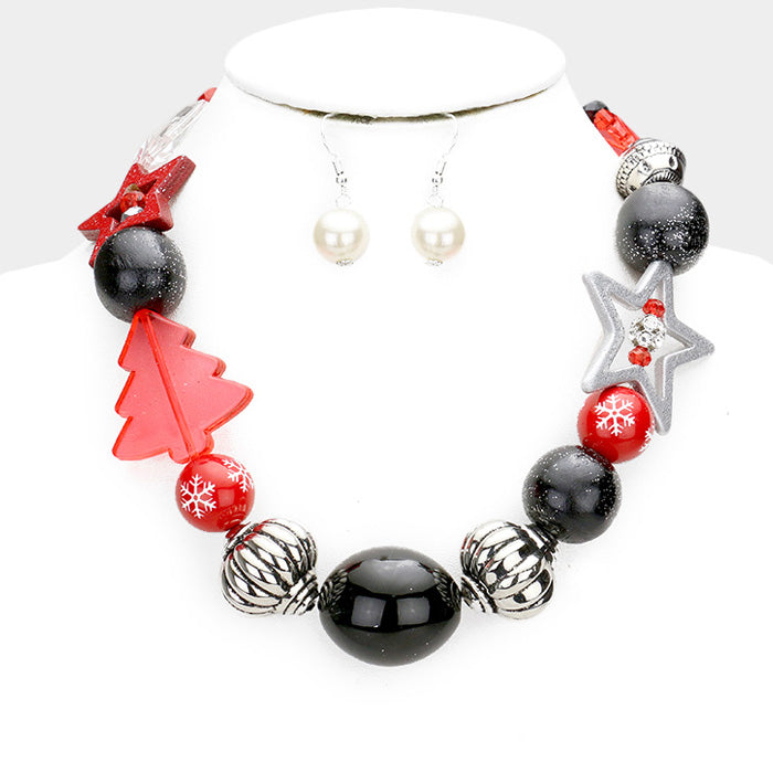 iLLASPARKZ Multi Beaded Christmas Tree Star Detail Collar Bib Necklace