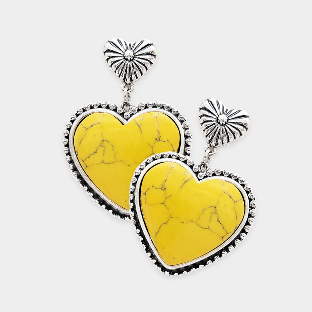 iLLASPARKZ Natural Stone Heart Dangle Earrings