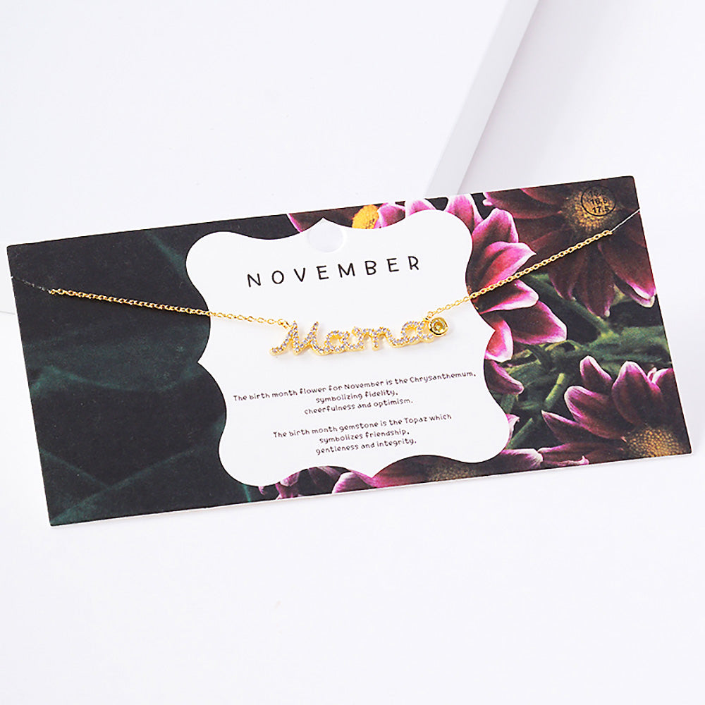 iLLASPARKZ November Birthstone MAMA Message Pendant Necklace