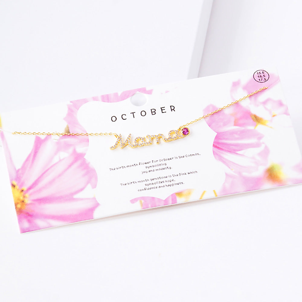 iLLASPARKZ October Birthstone MAMA Message Pendant Necklace