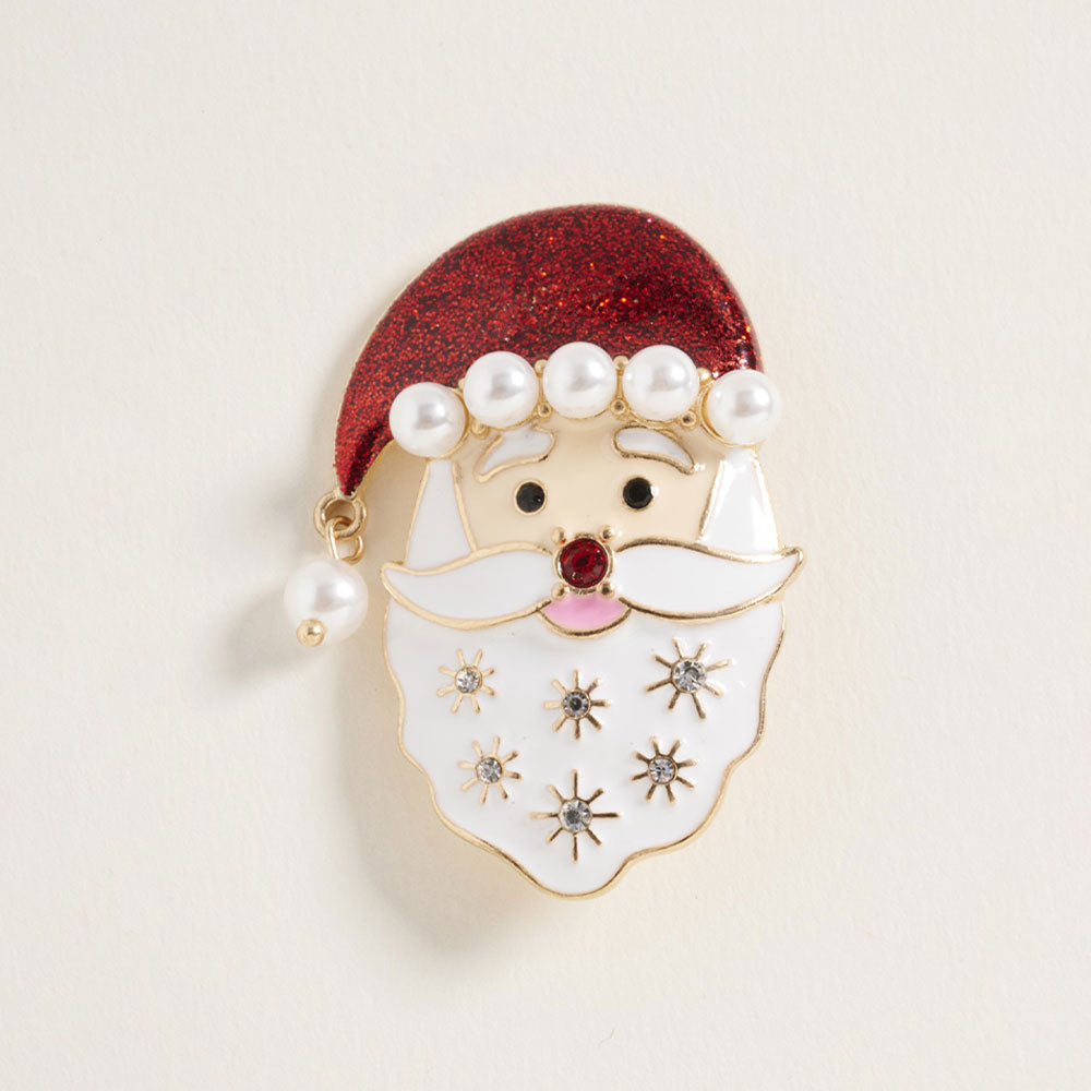 Celebrate the season with a charming Santa Claus brooch, detailed with glimmering accents and pearl embellishments. A fun and festive accessory perfect for holiday parties and winter events.