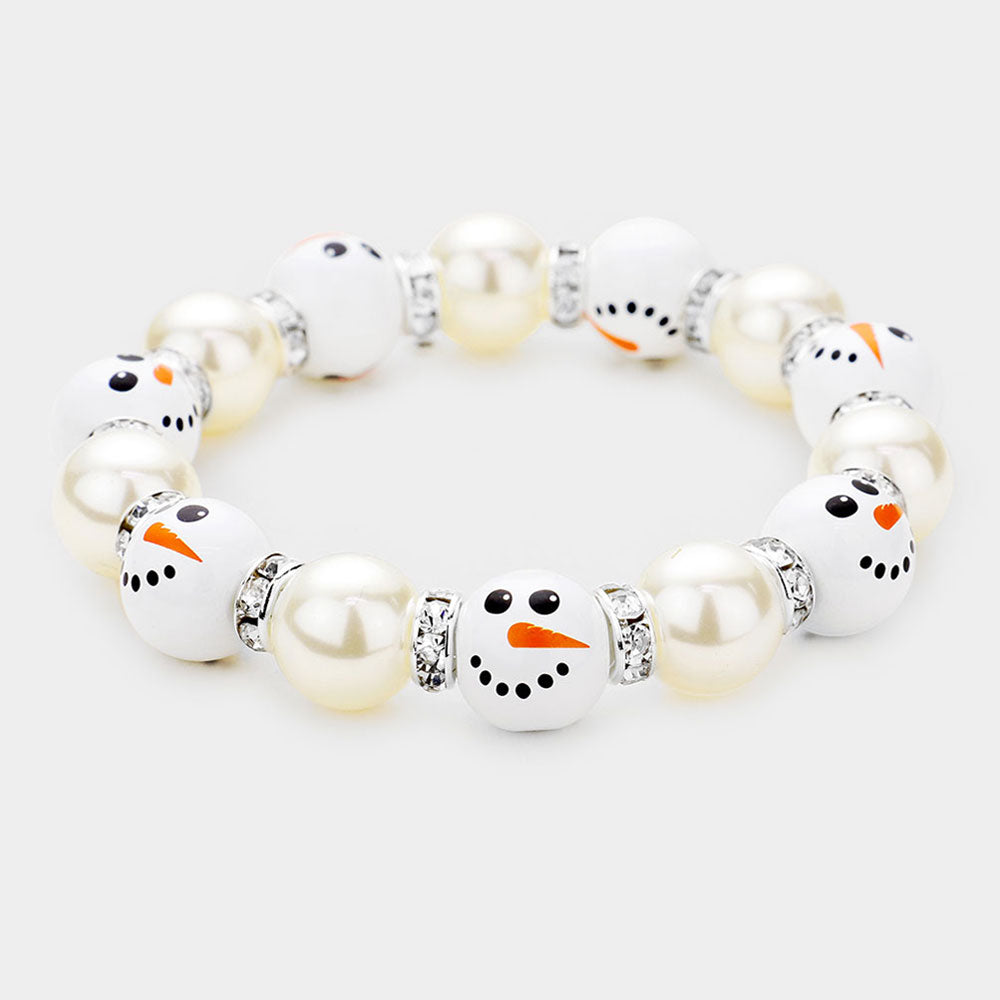 iLLASPARKZ Pearl Snowman Print Bead Stretch Bracelet