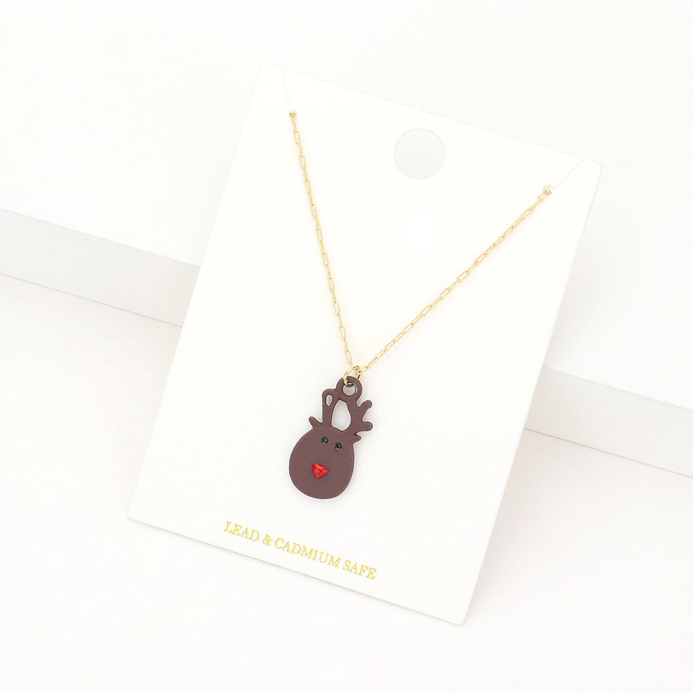 iLLASPARKZ Polymer Clay Reindeer Rudolph Pendant Necklace
