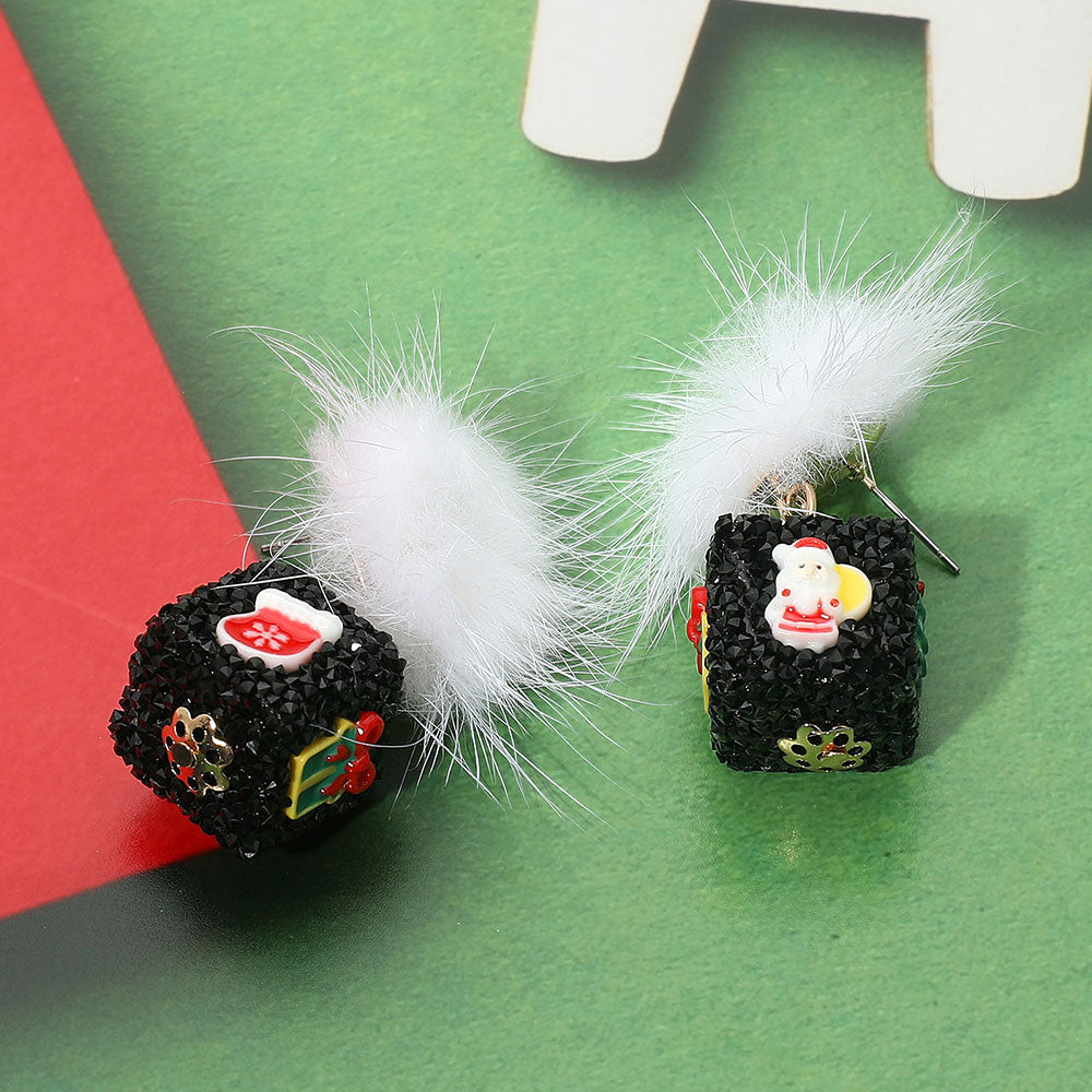 iLLASPARKZ Pom Pom Glittered Christmas Dice Dangle Earrings