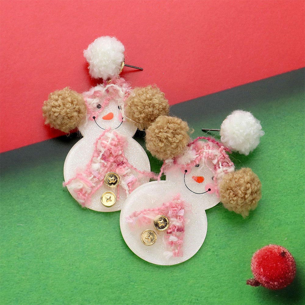 iLLASPARKZ Pom Pom Glittered Resin Snowman Dangle Earrings