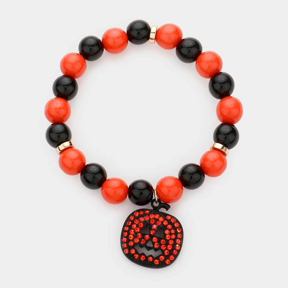 Festive Halloween bracelet with alternating beads and a sparkling pumpkin charm. A spooky yet stylish accessory perfect for Halloween parties, costumes, or seasonal celebrations.