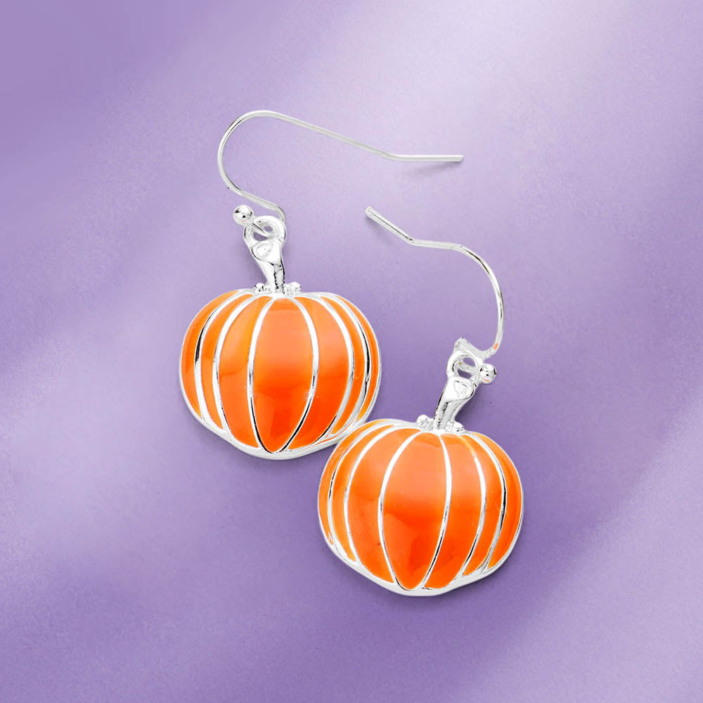 Embrace autumn charm with these pumpkin-shaped dangle earrings featuring sleek wire detailing. Perfect for seasonal outfits, Halloween events, or festive accessorizing, they add a playful yet stylish touch to your fall wardrobe.