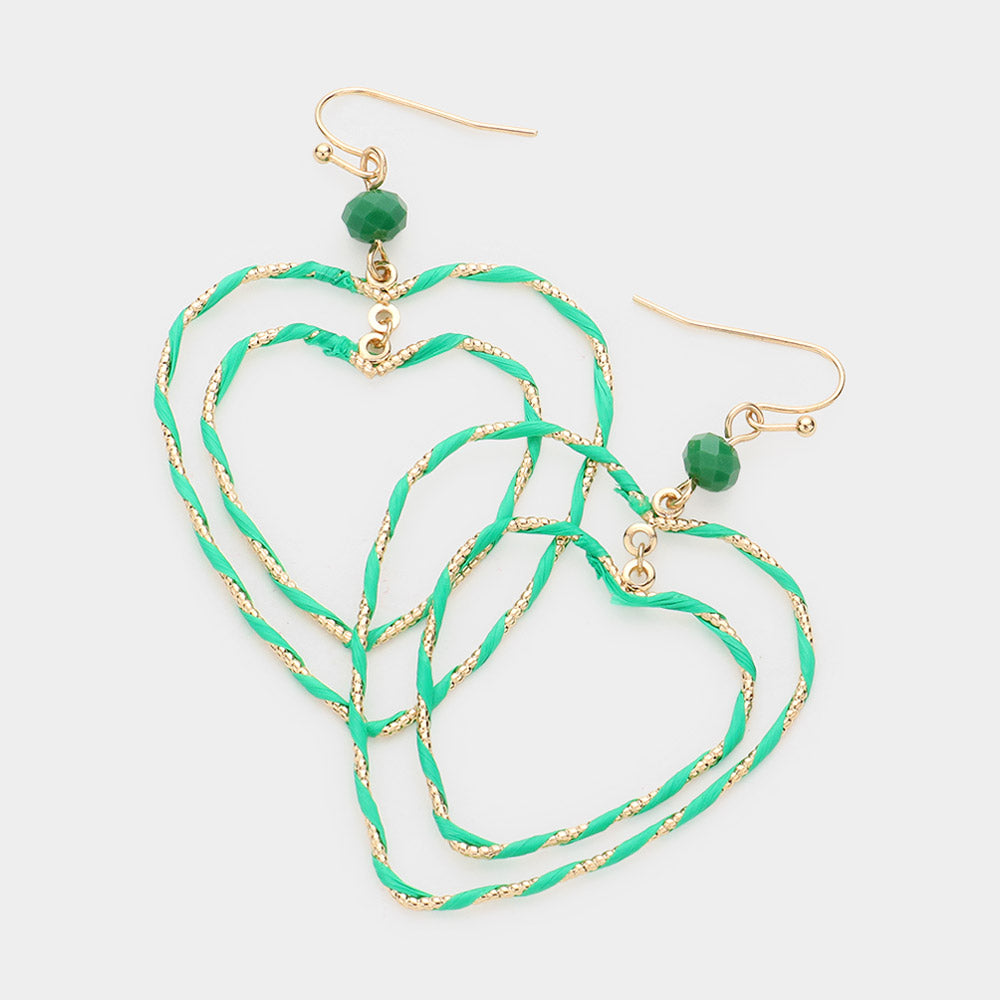 iLLASPARKZ Raffia Wrapped Double Open Heart Link Dangle Earrings