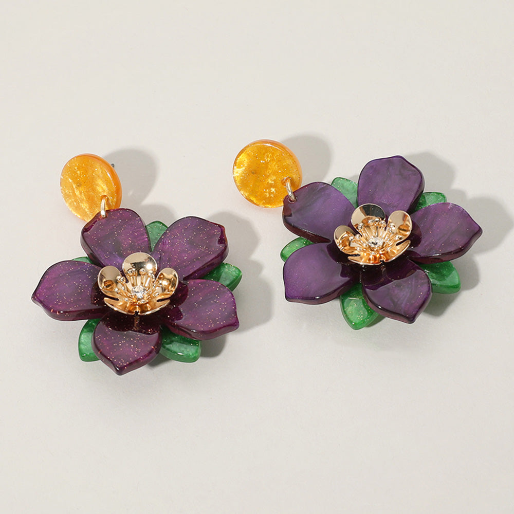 iLLASPARKZ Resin Mardi Gras Flower Dangle Earrings