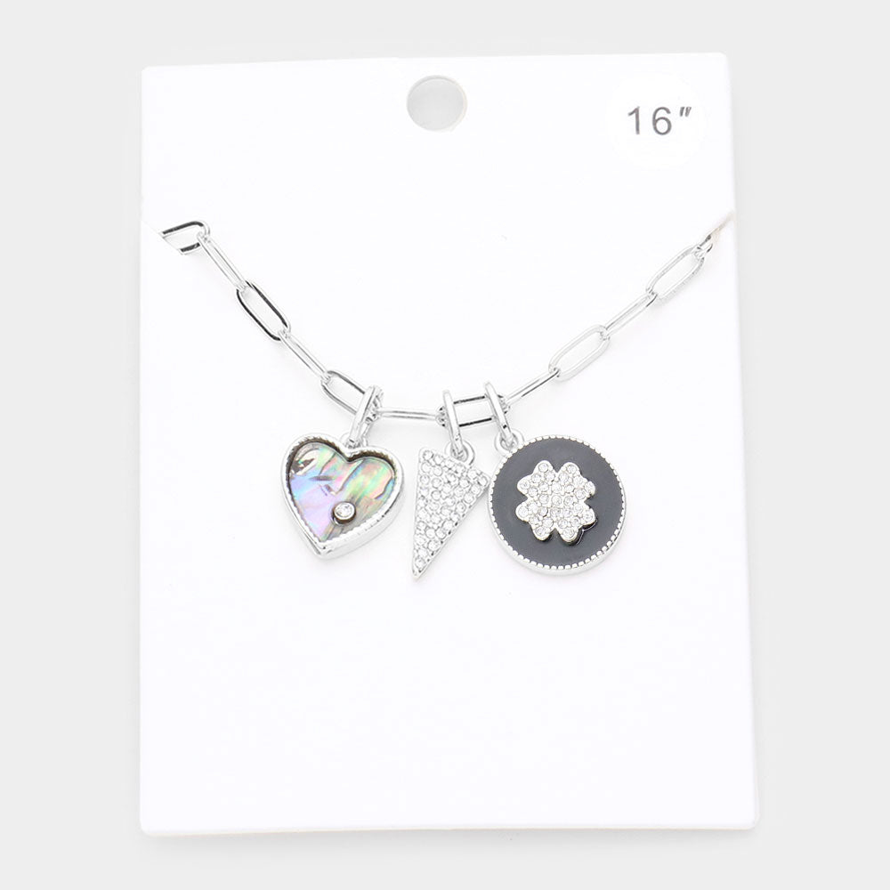 iLLASPARKZ Rhinestone Embellished Abalone Heart Triangle Quatrefoil Pendant Necklace