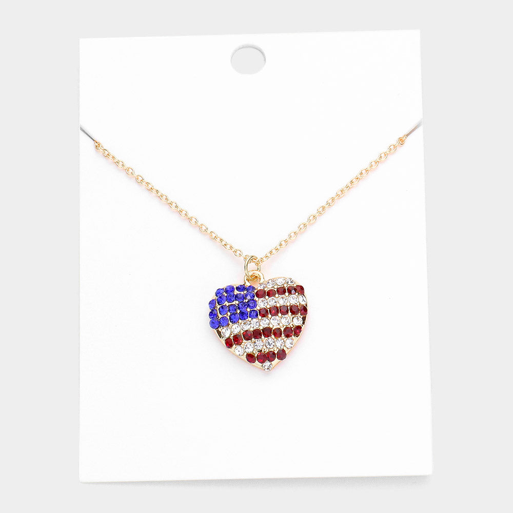 iLLASPARKZ Rhinestone Embellished American USA Flag Heart Pendant Necklace