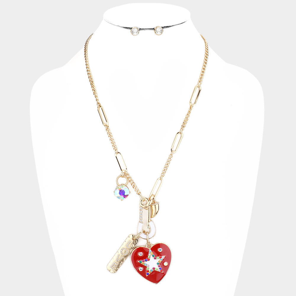 iLLASPARKZ Rhinestone Embellished Safety Pin LOVE Star Centered Enamel Heart Pendant Necklace
